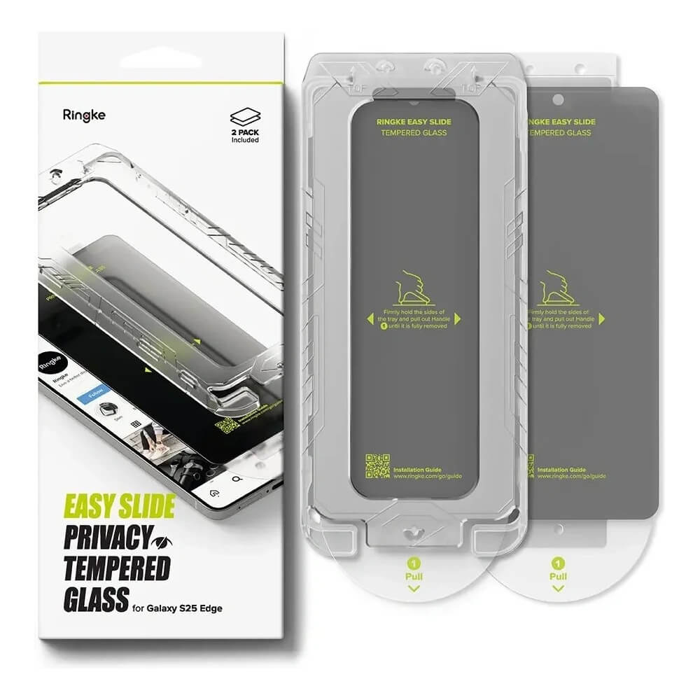 2 броя калени стъклени защитни покрития с определен ъгъл на виждане за дисплея на Samsung Galaxy S25 Edge - Ringke Privacy Easy Slide Tempered Glass 2 Pack (прозрачен)