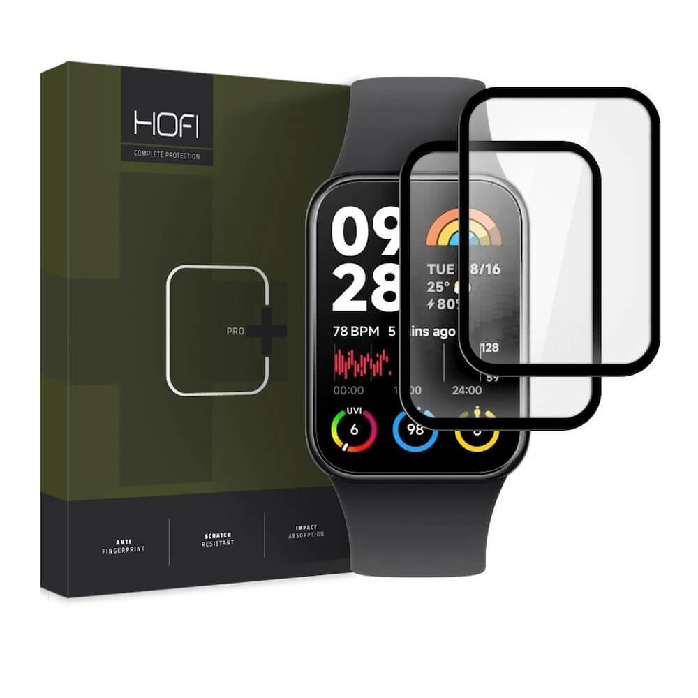 2 броя калено стъклено защитно покритие на Xiaomi Smart Band 8 Pro - Hofi Glass Pro Plus Screen Protector (черен-прозрачен)