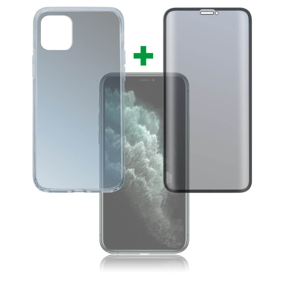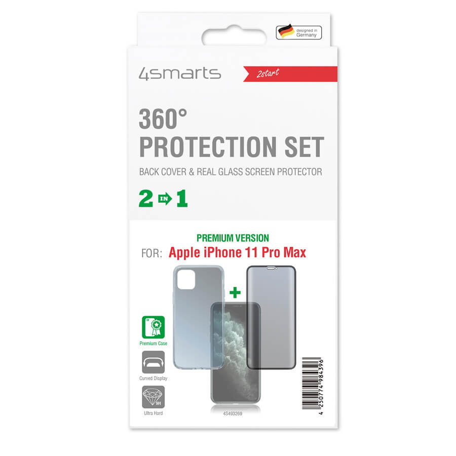 4smarts 360° Premium Protection Set - тънък силиконов кейс и стъклено защитно покритие с извити ръбове за дисплея на iPhone 11 Pro Max (прозрачен)
