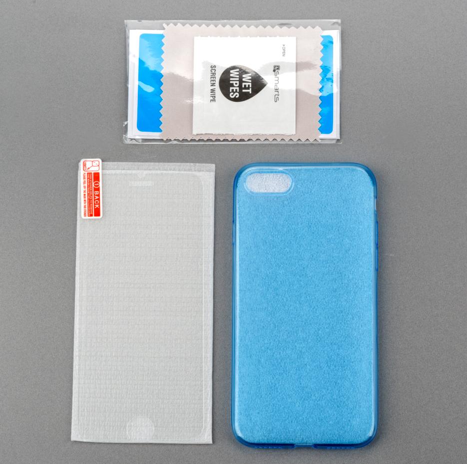 4smarts 360° Protection Set - тънък силиконов кейс и стъклено защитно покритие за дисплея на iPhone 8, iPhone 7 (син)