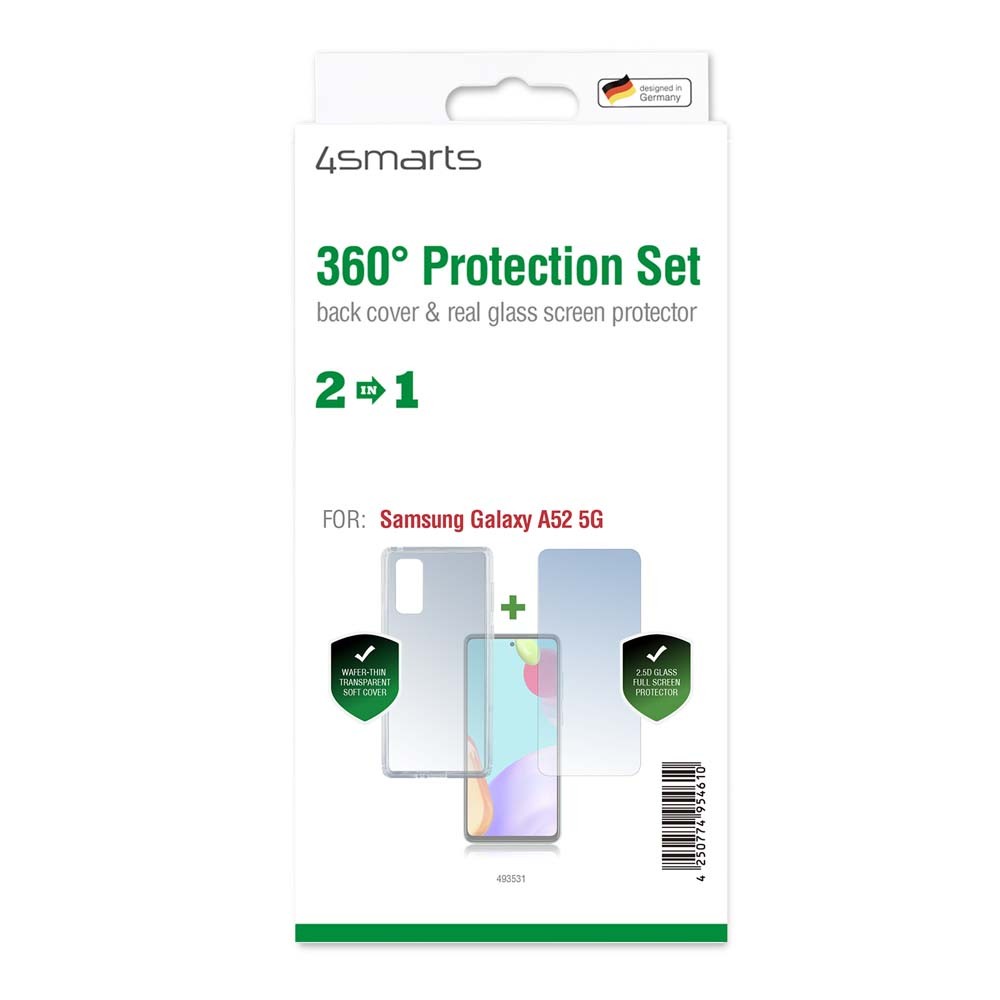 4smarts 360° Protection Set - тънък силиконов кейс и стъклено защитно покритие за дисплея на Samsung Galaxy A52 5G (прозрачен)