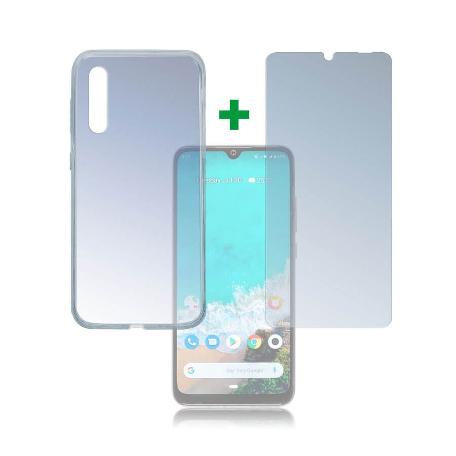 4smarts 360° Protection Set - тънък силиконов кейс и стъклено защитно покритие за дисплея на Xiaomi Mi A3 (прозрачен)