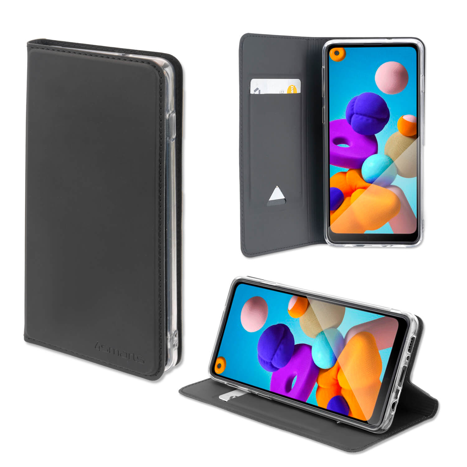 4smarts Flip Case URBAN Lite - кожен калъф с поставка и отделение за кр. карта за Samsung Galaxy A21s (черен)
