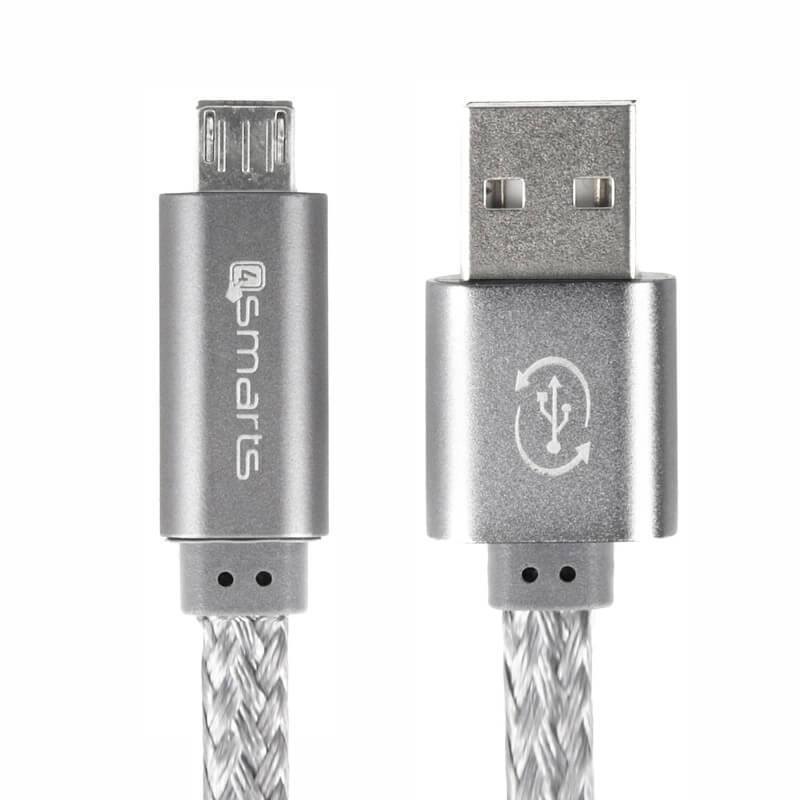 4smarts GleamCord Micro-USB Data Cable - качествен microUSB кабел за мобилни устройства (1м) (сребрист)