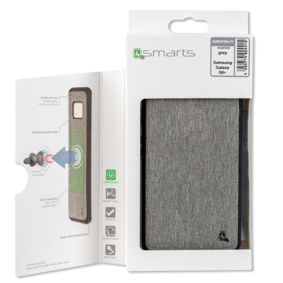4smarts Hard Cover UltiMaG Car Case - полиуретанов кейс с вградена метална пластина за магнитни поставки за Samsung Galaxy S8 Plus (сив)