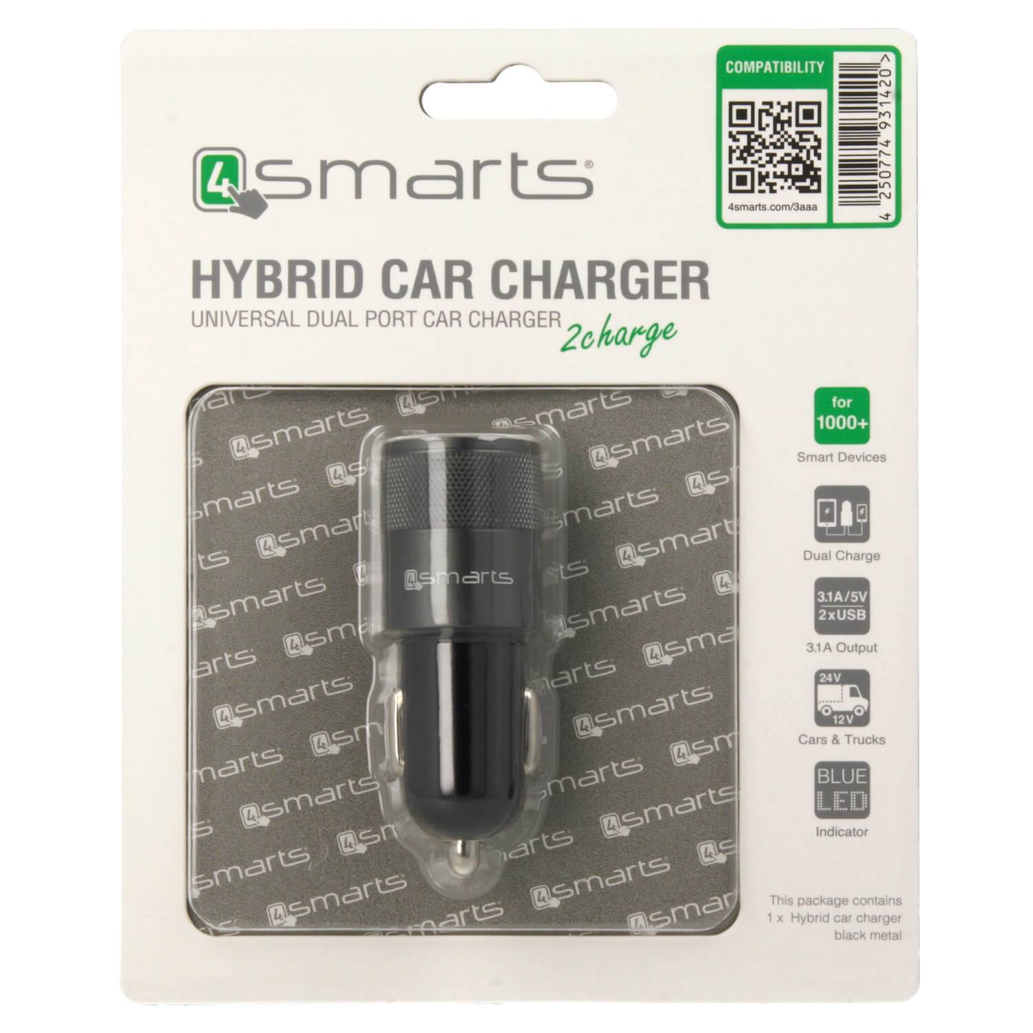 4smarts Hybrid In-Car Metal Charger 3.1A - качествено алуминиево зарядно за кола (3.1 Ампера) с 2 USB изхода за смартфони и таблети (черен-сив)