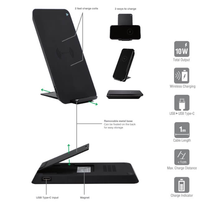 4smarts Inductive Fast Charger VoltBeam Evo 10W - поставка (пад) за безжично захранване за QI съвместими устройства (черен)