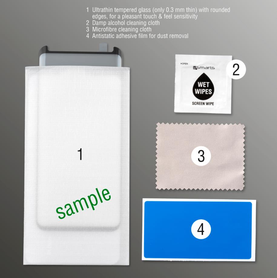 - Висококачествен стъклен скрийн протектор (защитно покритие) с извити ръбове за дисплея на вашето мобилно устройство