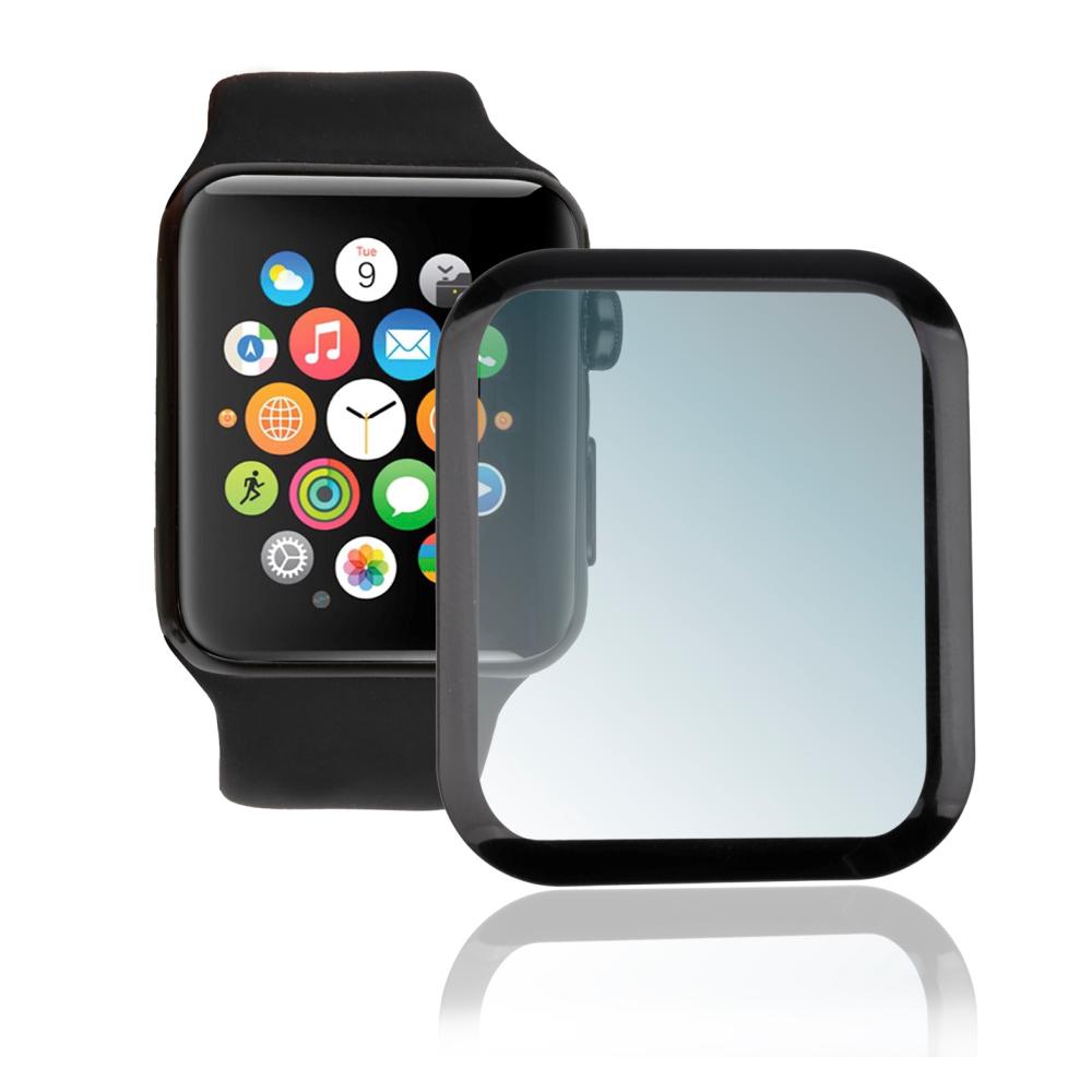 4smarts Second Glass Curved Colour Frame - калено стъклено защитно покритие с извити ръбове за дисплея на Apple Watch Series 5, 4 (44mm) (черен-прозрачен)