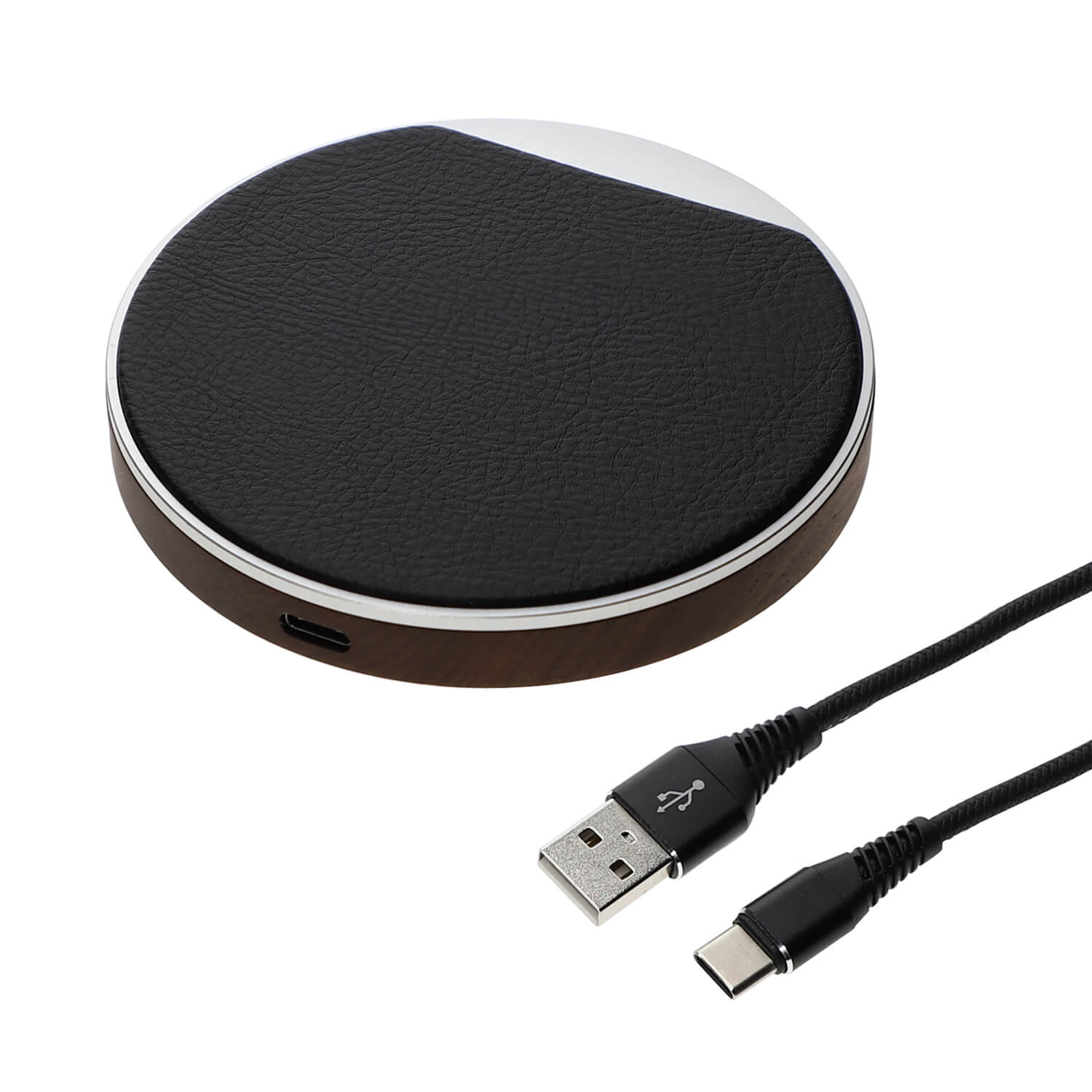 4smarts Select Wireless Fast Charger LIGNO 10W - поставка (пад) за безжично захранване с елементи от истинско дърво, карбон и кожа (сребрист-черен)