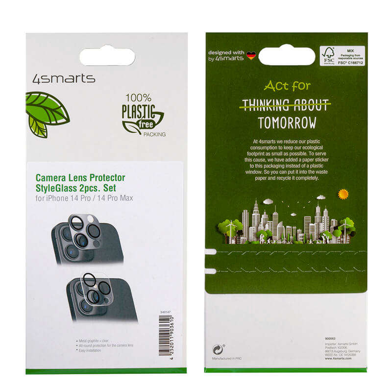 4smarts StyleGlass Camera Lens Protector - 2 броя предпазни плочки за камерата на iPhone 14 Pro, iPhone 14 Pro Max (тъмносив и прозрачен)
