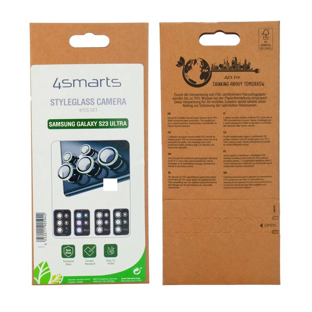 4smarts StyleGlass Camera Lens Protector 4 Pack - 4 комплекта предпазни стъклени лещи за камерата на Samsung Galaxy S23 Ultra (различни цветове)