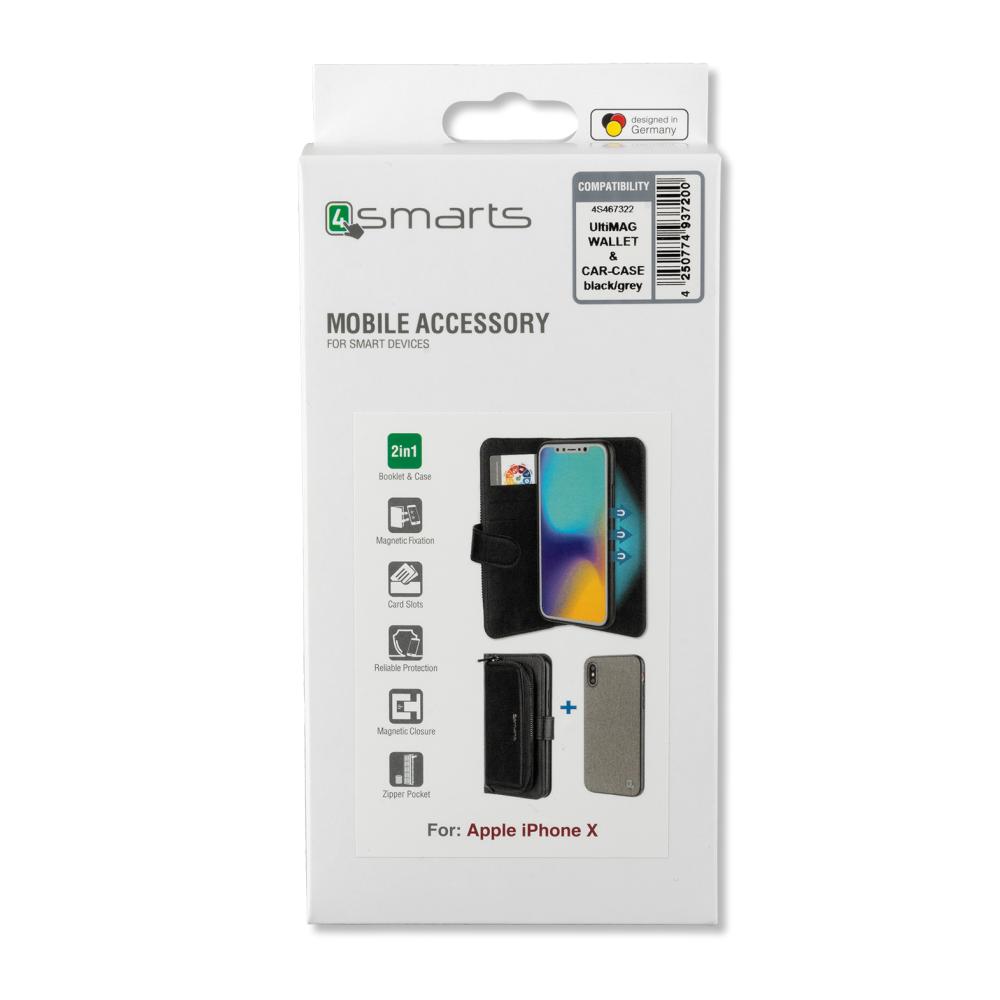 4smarts Ultimag 2in1 Flip Wallet and Car Case - кожен калъф и кейс с магнитно захващане за iPhone XS, iPhone X (черен)