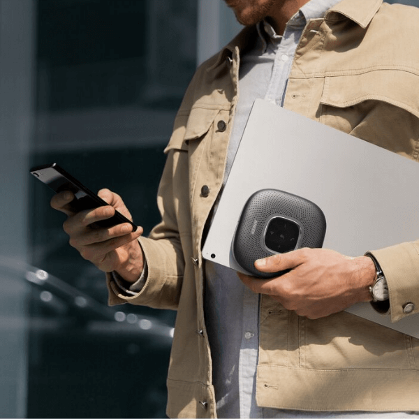 - Включен калъф за съхранение - Лекият и компактен калъф за пътуване защитава PowerConf, докато сте в командировки или се придвижвате из офиса