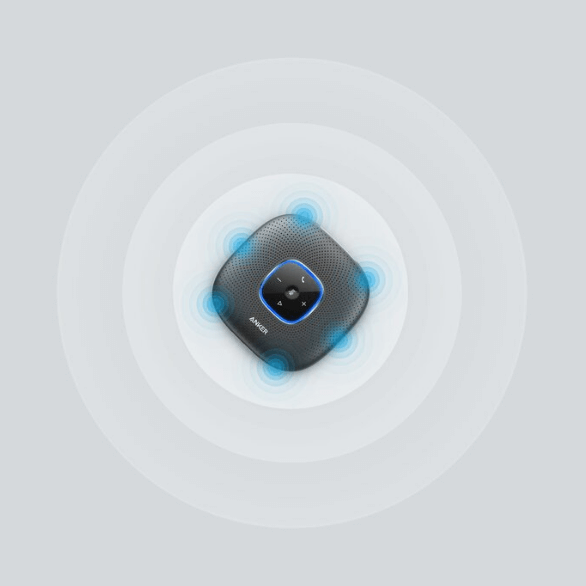- Балансиран звук - Без значение къде се намирате в стаята, PowerConf Bluetooth високоговорителят подобрява гласа ви, така че всички звуци звучат еднакво силно и ясно