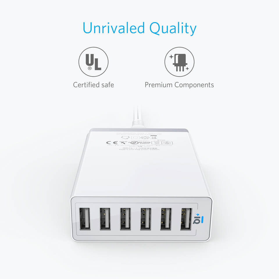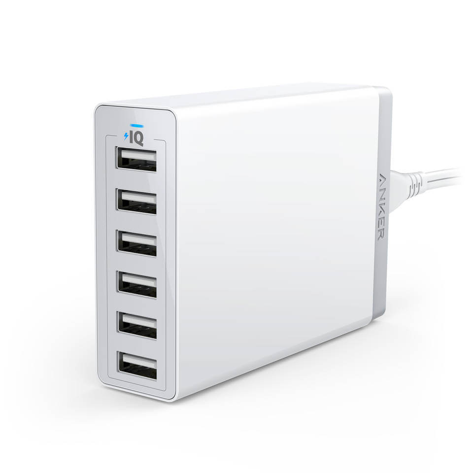 Anker PowerPort 6 Ports (60W) с PowerIQ и VoltageBoost - захранване с 6 x USB изхода за мобилни телефони и таблети (бял)