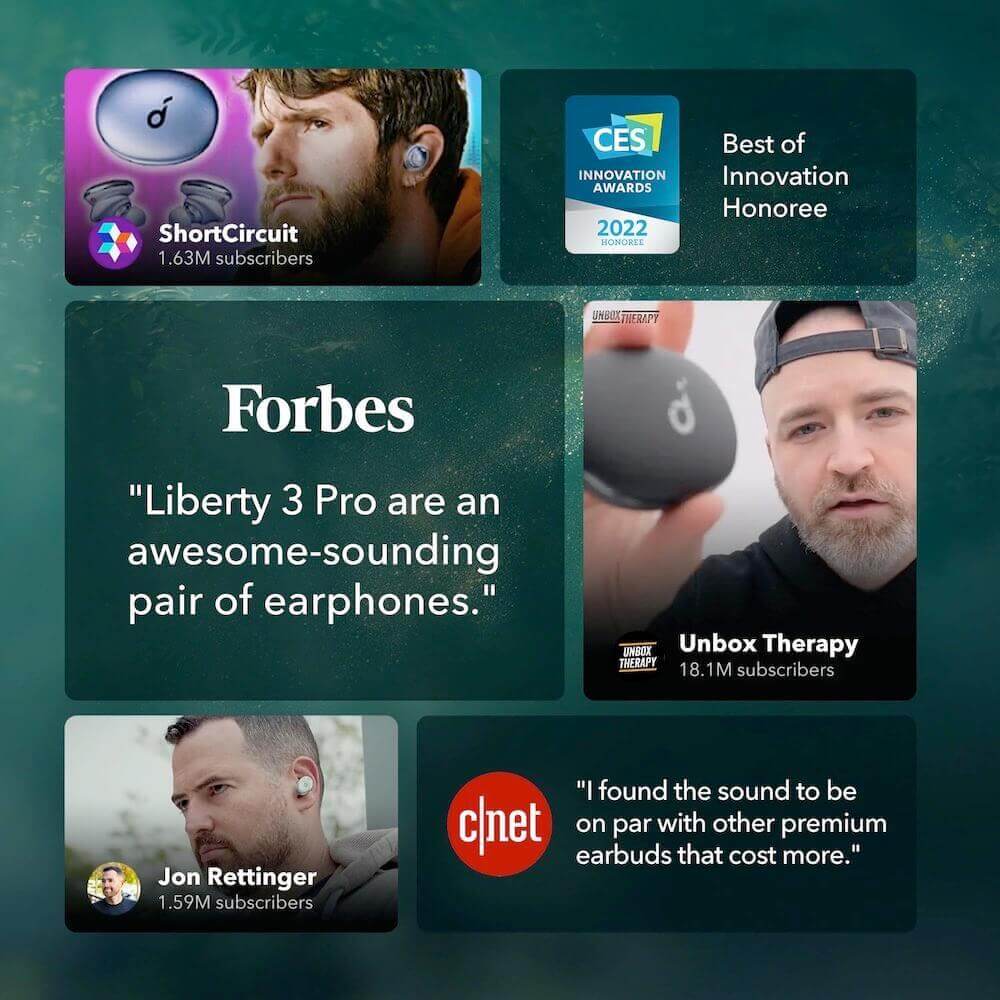 - Anker Soundcore Liberty 3 Pro са първите в света слушалки с коаксиална звукова архитектура Astria 2.0 (ACAA 2.0), което е успяло да впечатли 20 носителя на награди Грами