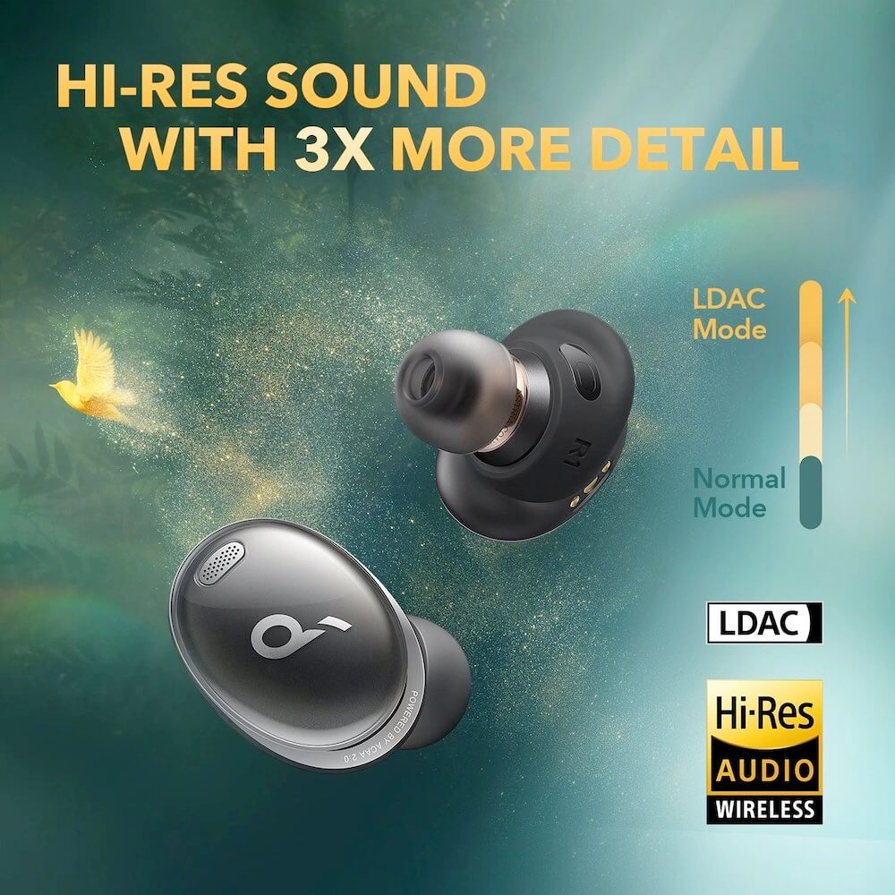 - Liberty 3 Pro поддържа технологията LDAC за сертифицирано слушане с Hi-Res Audio Wireless. 3 пъти повече данни се прехвърлят от вашето устройство към слушалките, за да се запази всеки малък детайл в песента