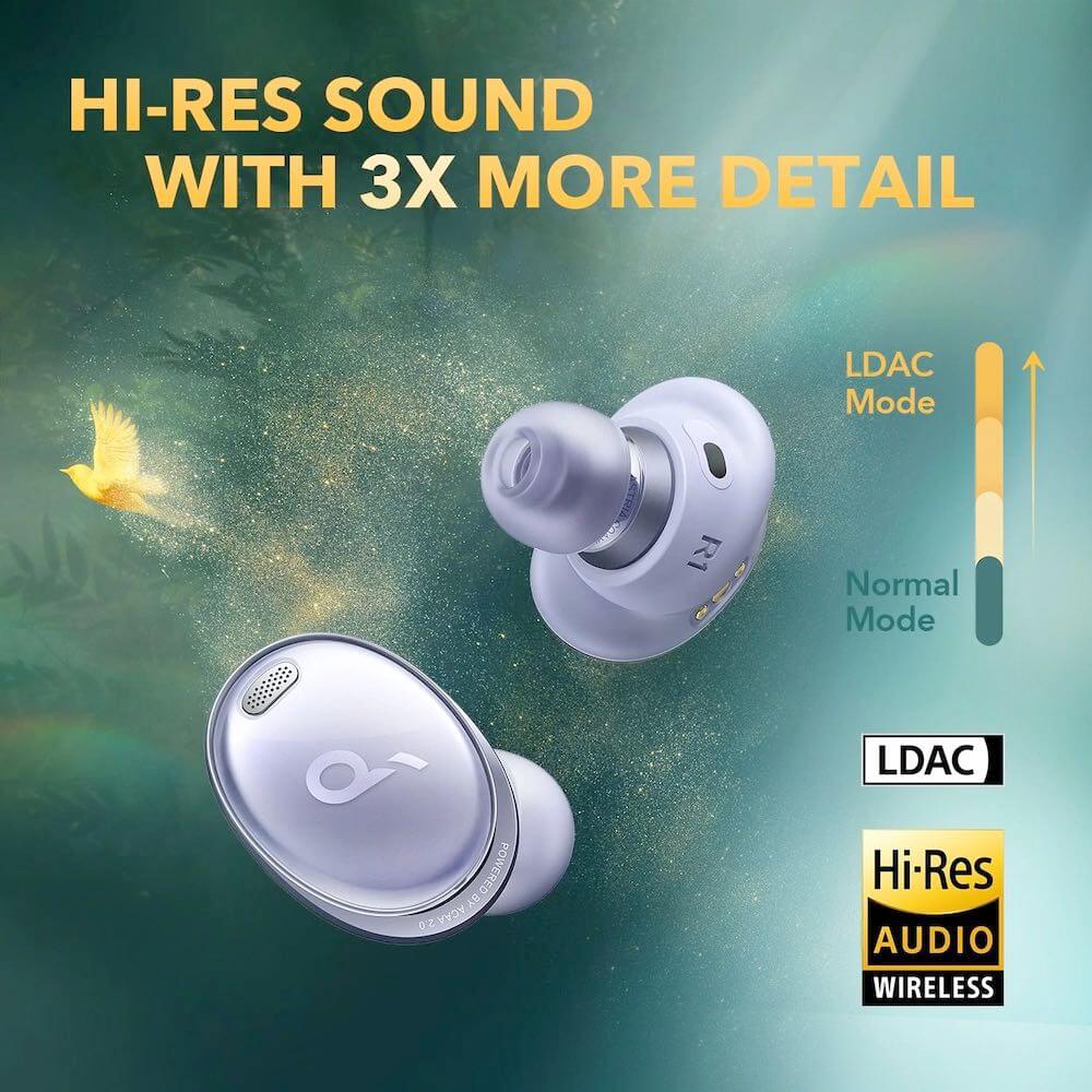 - Liberty 3 Pro поддържа технологията LDAC за сертифицирано слушане с Hi-Res Audio Wireless. 3 пъти повече данни се прехвърлят от вашето устройство към слушалките, за да се запази всеки малък детайл в песента