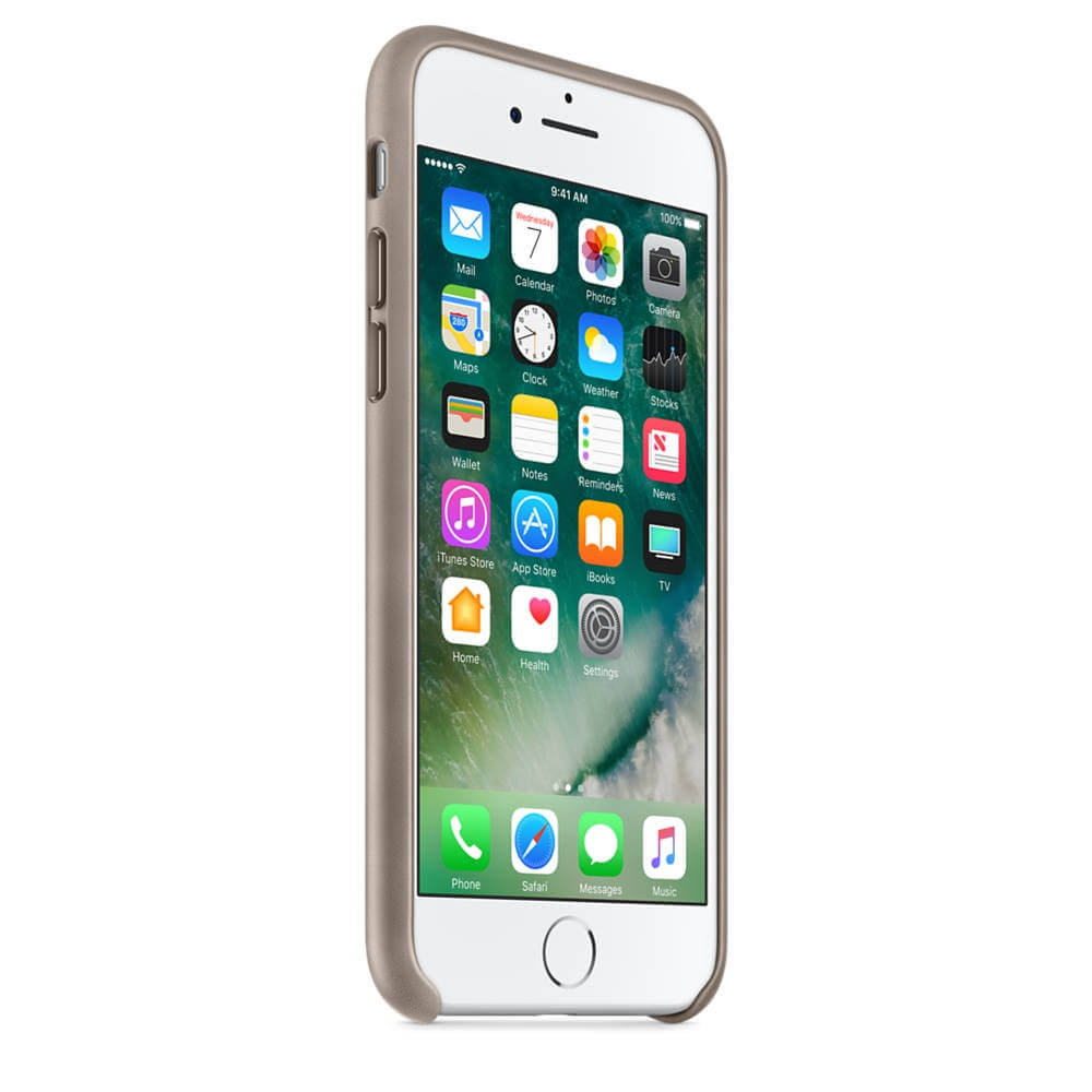 Apple iPhone Leather Case - оригинален кожен кейс (естествена кожа) за iPhone 8, iPhone 7 (светлосив)