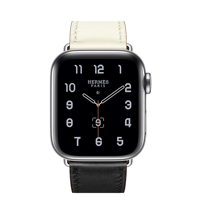 Apple Watch Hermès Series 5, 44mm Noir/Blanc/Gold Stainless Steel Case with Single Tour, GPS + Cellular - умен часовник от Apple