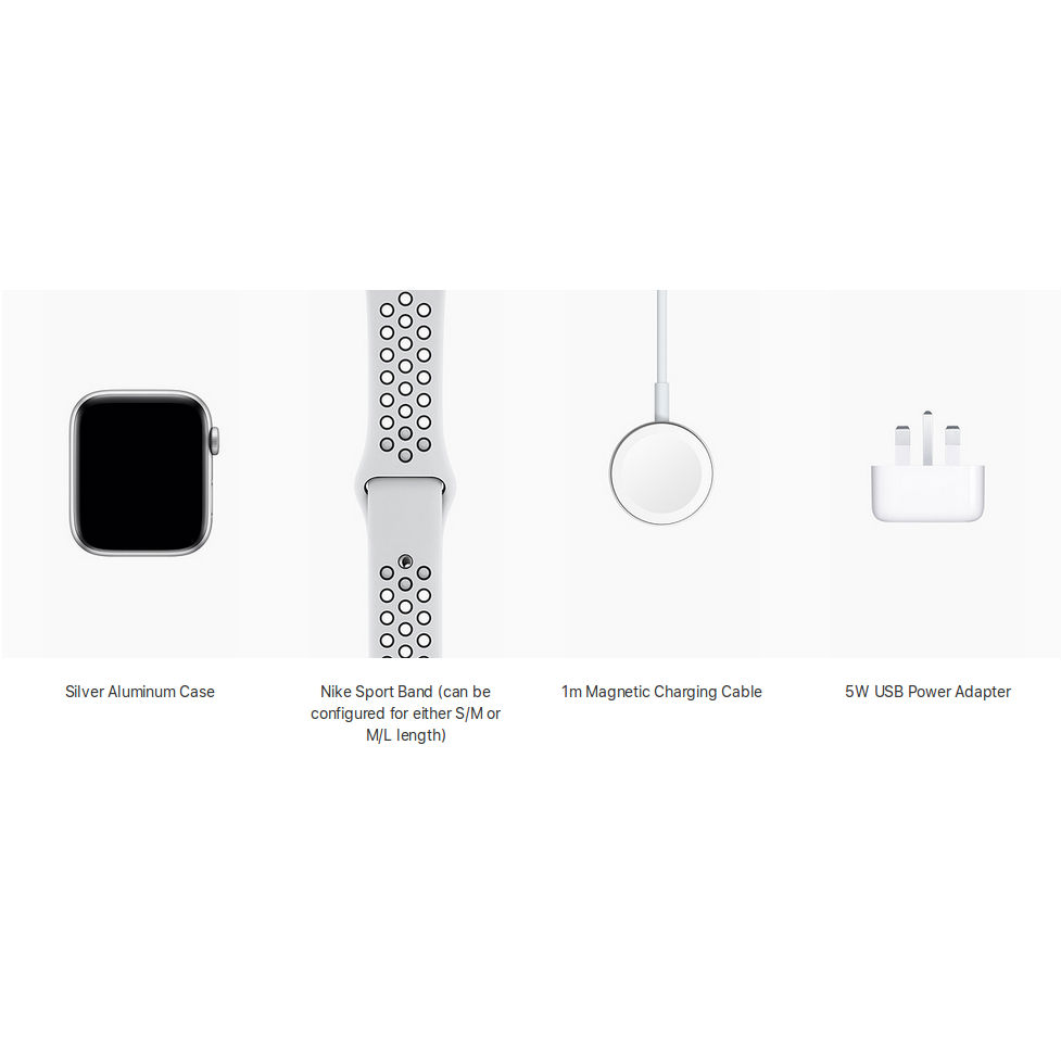 - Модел: Watch 40mm, Silver Aluminum Case with Pure Platinum/Black Nike Sport Band, GPS