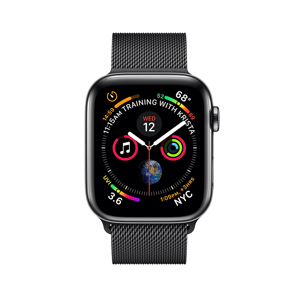 Apple Watch Series 4, 44mm Space Black Stainless Steel Case with Milanese Loop, GPS + Cellular - умен часовник от Apple