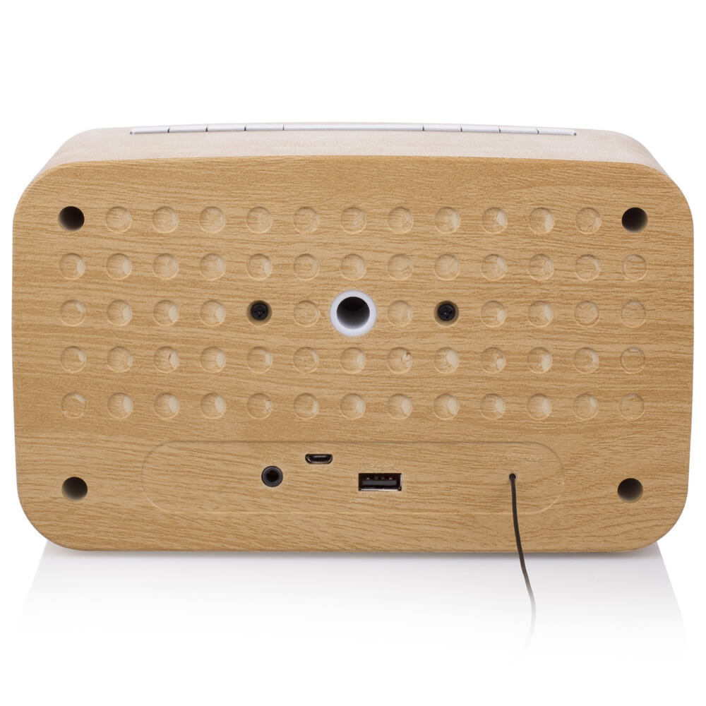 - Радиото разполага с двойна аларма, която ви позволява да зададете аларма на партньора си, вашата, или и на двама ви. Ретро радиото е не само удобно, но и изглежда стилно на нощното ви шкафче. Освен това може да се използва резервната батерия, която да гарантира, че алармата ви не се прекъсва в случай на прекъсване на захранването