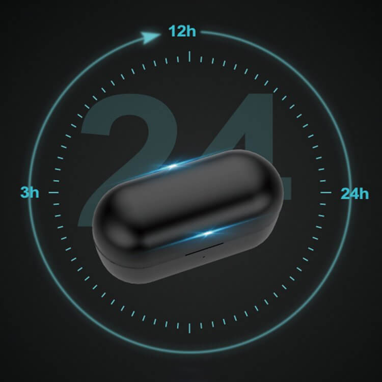 - Вградената 400 mAh батерия в кейса, ви позволява да зареждате слушалките четири пъти. Когато са напълно заредени, те позволяват 4 часа работа, като всяка слушалка разполага с капацитет от 50 mAh