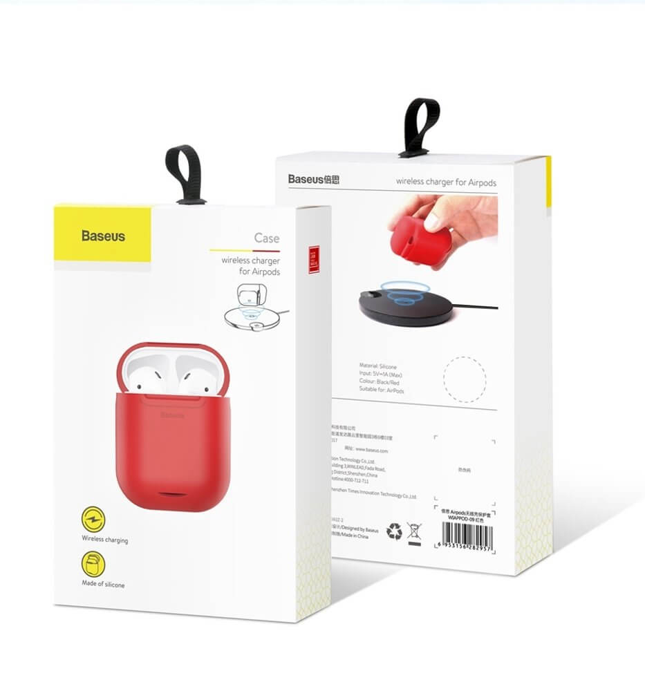 Baseus Airpods Silicone Wireless Charging Case - силиконов калъф с възможност за безжично зареждане за Apple Airpods (червен)