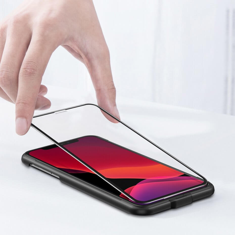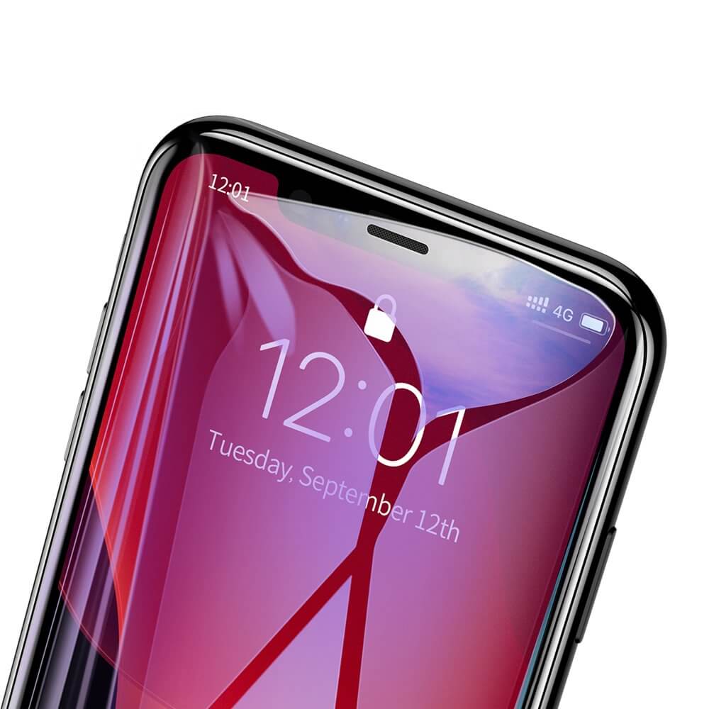 Baseus Anti-bluelight Full Screen Tempered Glass (0.30mm) - калено стъклено защитно покритие за целия дисплей на iPhone 11, iPhone XR (прозрачен-черен) (2 броя)