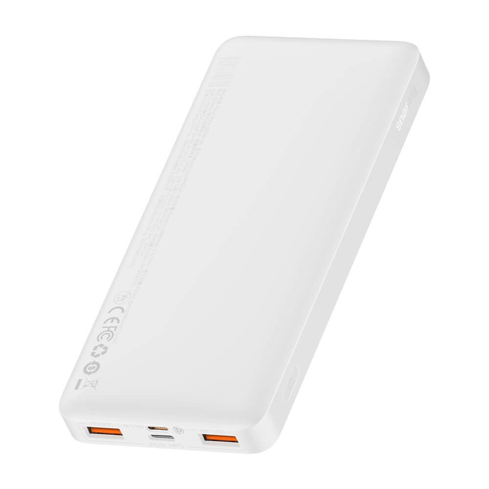 Baseus Bipow Digital Display Power Bank 20W 10000 mAh (PPDML-L02) - външна батерия с два USB-A и един USB-C изходи и технология за бързо зареждане (бял)