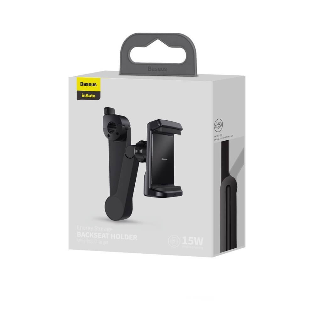 Baseus Energy Storage Backseat Holder Wireless Qi 15W Charger - поставка за смартфон за седалката на автомобил с възможност за безжично зареждане (черен)