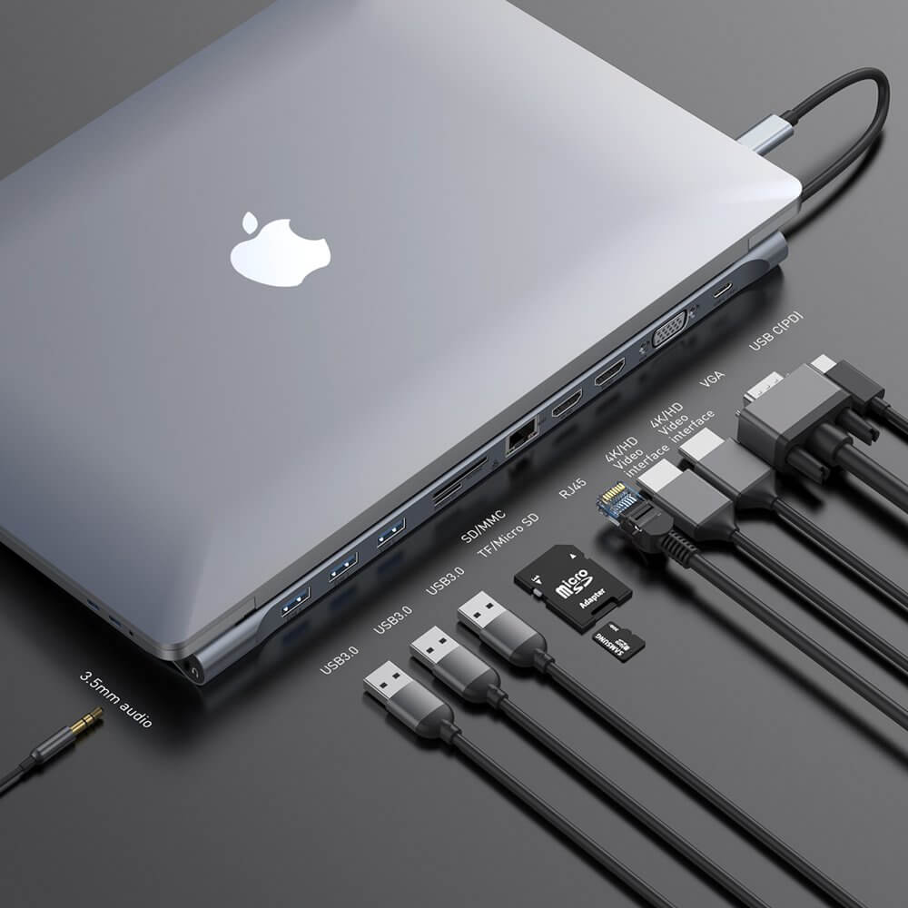 - Мултифункционален хъб с множество изходи за MacBook и компютри с USB-C стандарт