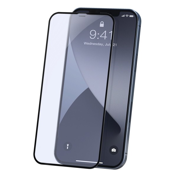 Baseus Full Screen Curved Anti-Bluelight Soft Edge Tempered Glass (SGAPIPH67N-TE01) - стъклено защитно покритие за целия дисплей на iPhone 12 Pro Max (прозрачен-черен) (2 броя)