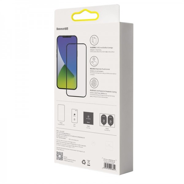 Baseus Full Screen Curved Anti-Bluelight Tempered Glass (SGAPIPH67N-KB01) - стъклено защитно покритие за целия дисплей на iPhone 12 Pro Max (прозрачен-черен) (2 броя)