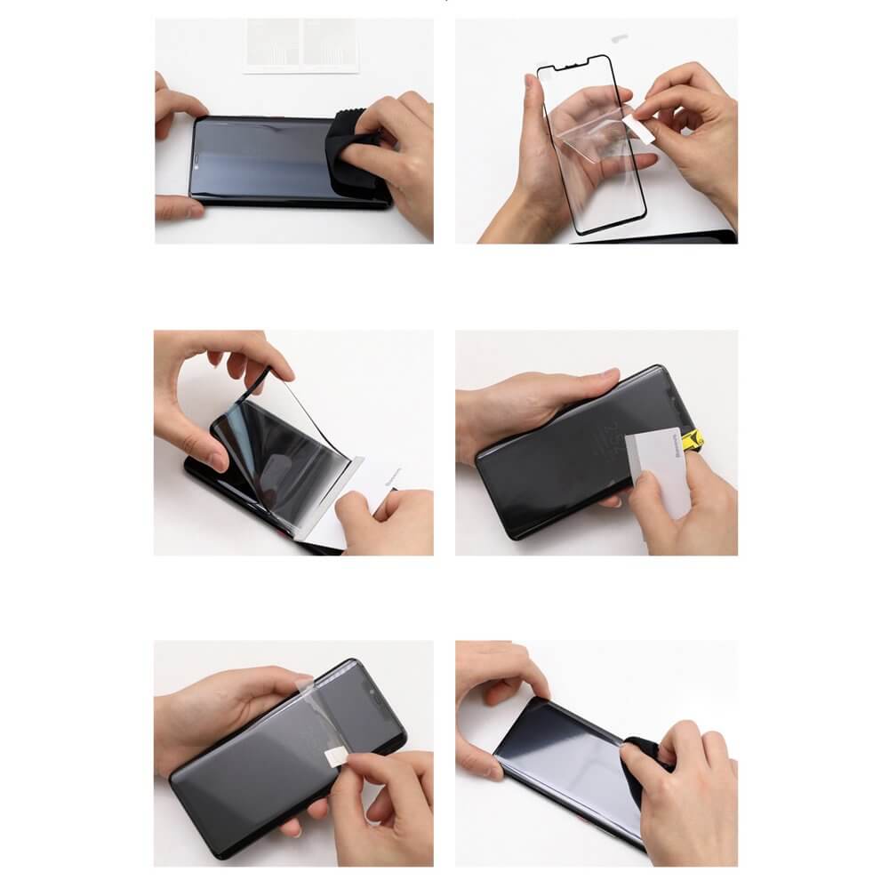 - 2 x Baseus Full Screem Curved Soft Screen Protector Anti Bluelight - 1 x микрофибърна кърпичка - 1 х мокра кърпичка - 2 х антистатична лепенка за премахване на прашинки