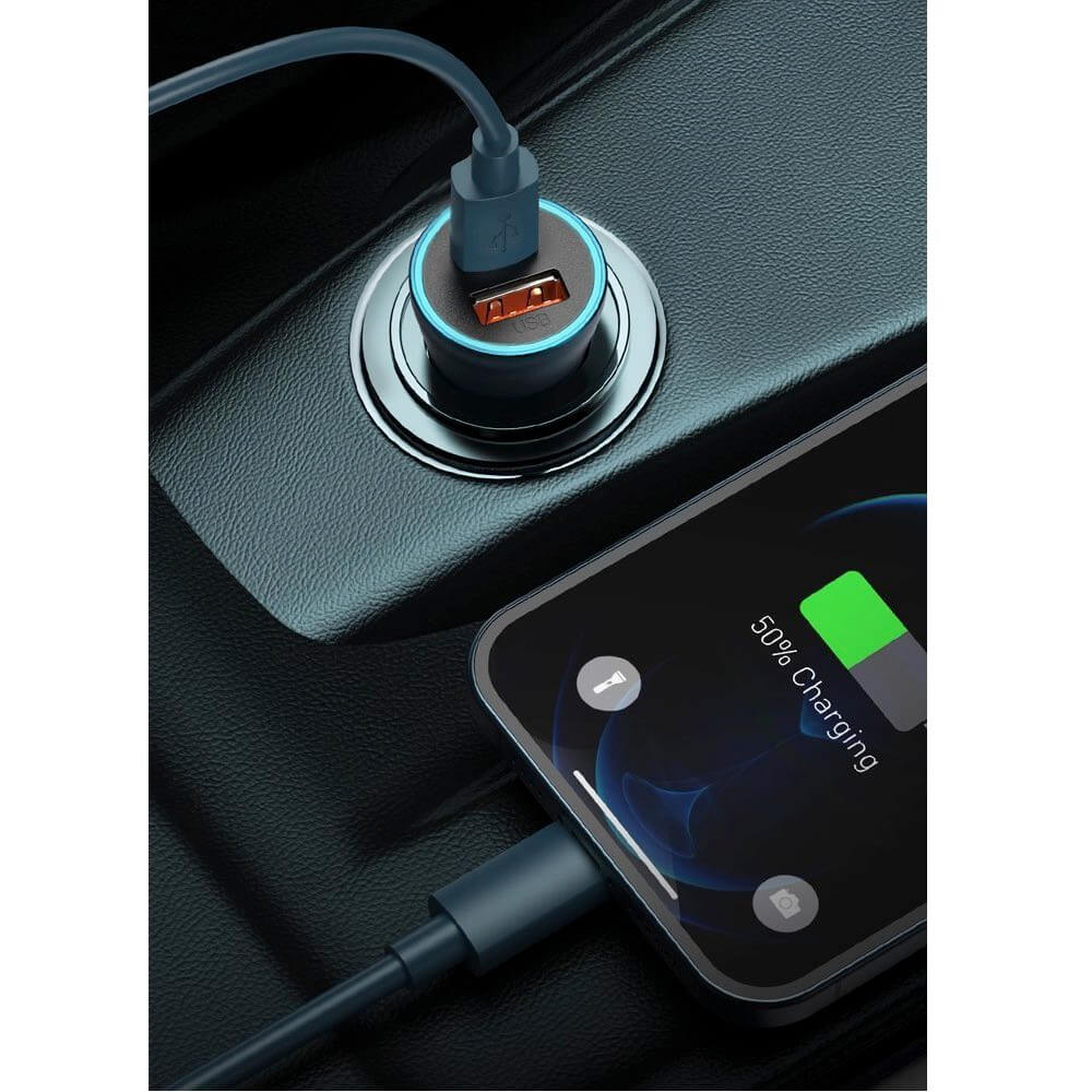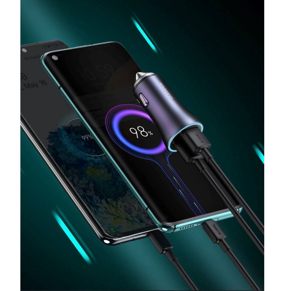 - Зарядно за кола с USB-A и USB-C изходи, като и двата притежават технология за бързо зареждане