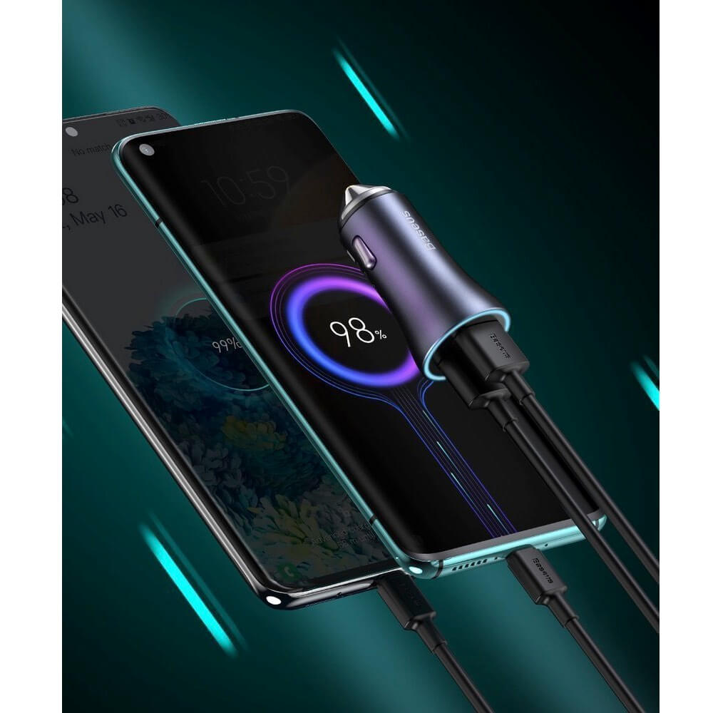 Baseus Golden Contactor Pro Quick Car Charger 40W (TZCCJD-03) - зарядно за кола с USB-A и USB-C изходи с технология за бързо зареждане и USB-C към Lightning кабел (син)