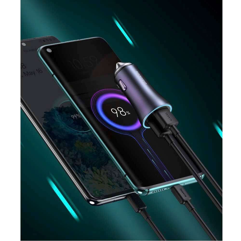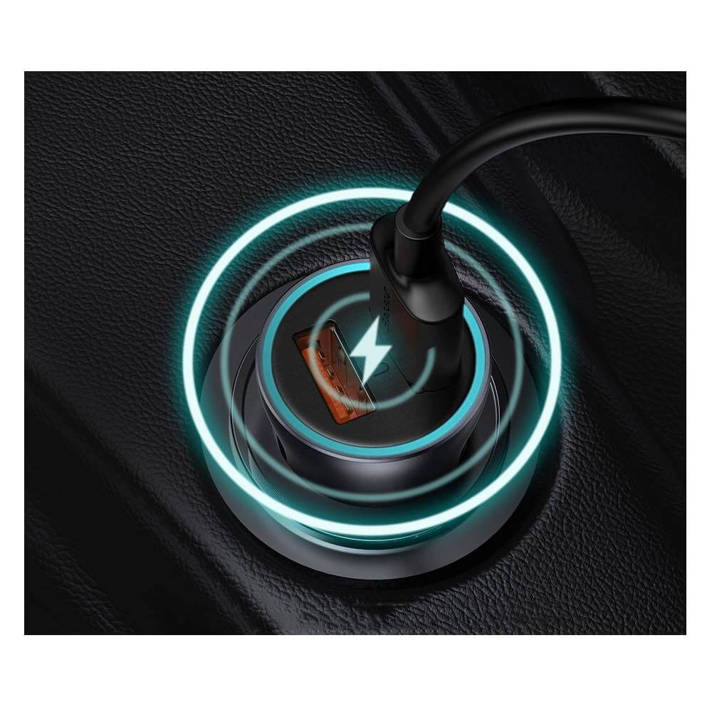Baseus Golden Contactor Pro Quick Car Charger 40W (TZCCJD-A0G) - зарядно за кола с два USB изхода, технология за бързо зареждане и USB-A към USB-C кабел (тъмносив)