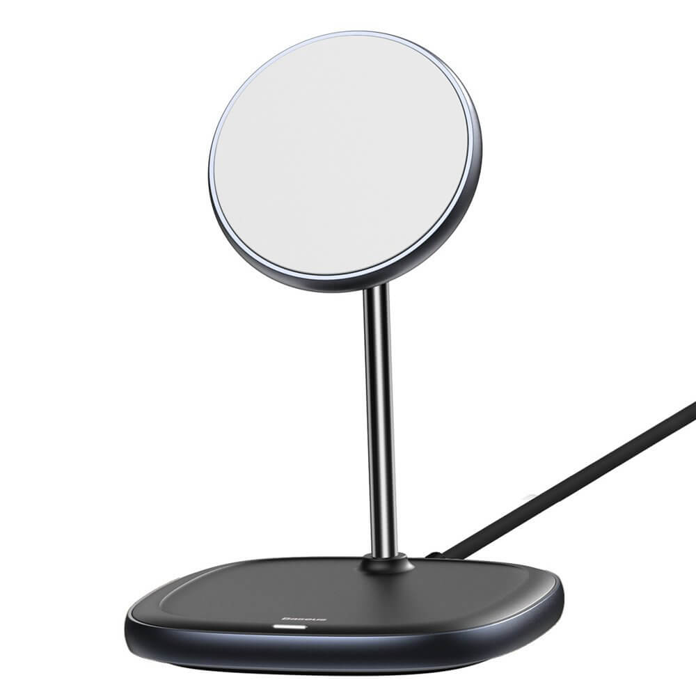 Baseus Magnetic Wireless Qi Charging Stand 15W (WXSW-01) - поставка (пад) за безжично зареждане за iPhone с Magsafe (черен)