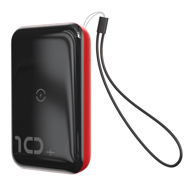 Baseus Mini S Bracket 10W Wireless Charger 10000mAh - външна батерия USB и USB-C изходи и с технология за безжично зареждане (черен-червен)