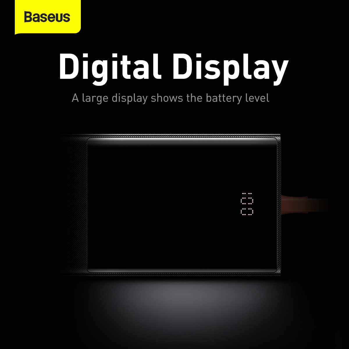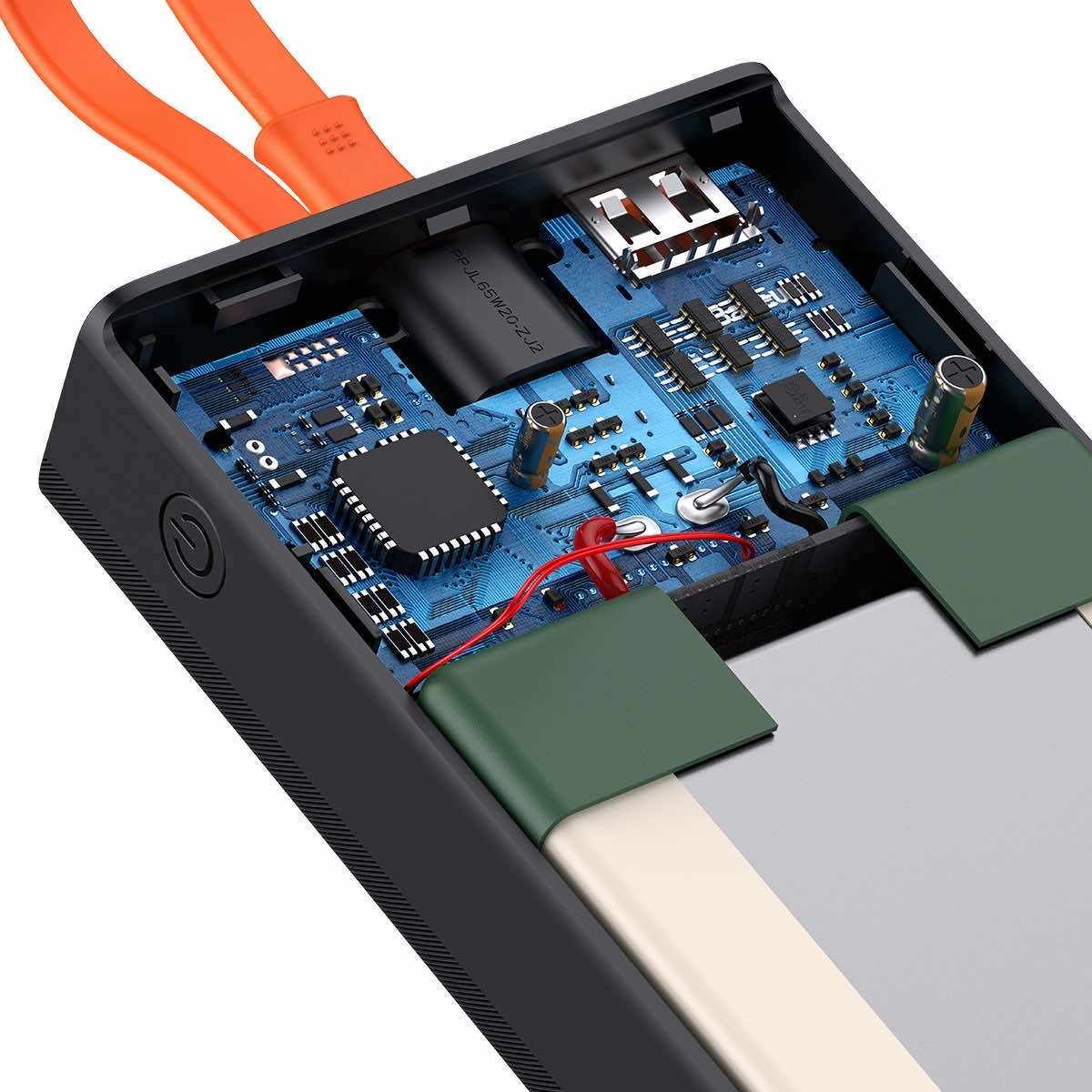 Baseus Power Bank Elf 65W 20000mAh (PPJL000001) - външна батерия 210000 mAh с вграден USB-C кабел и USB-C, 2xUSB-A портове (черен)