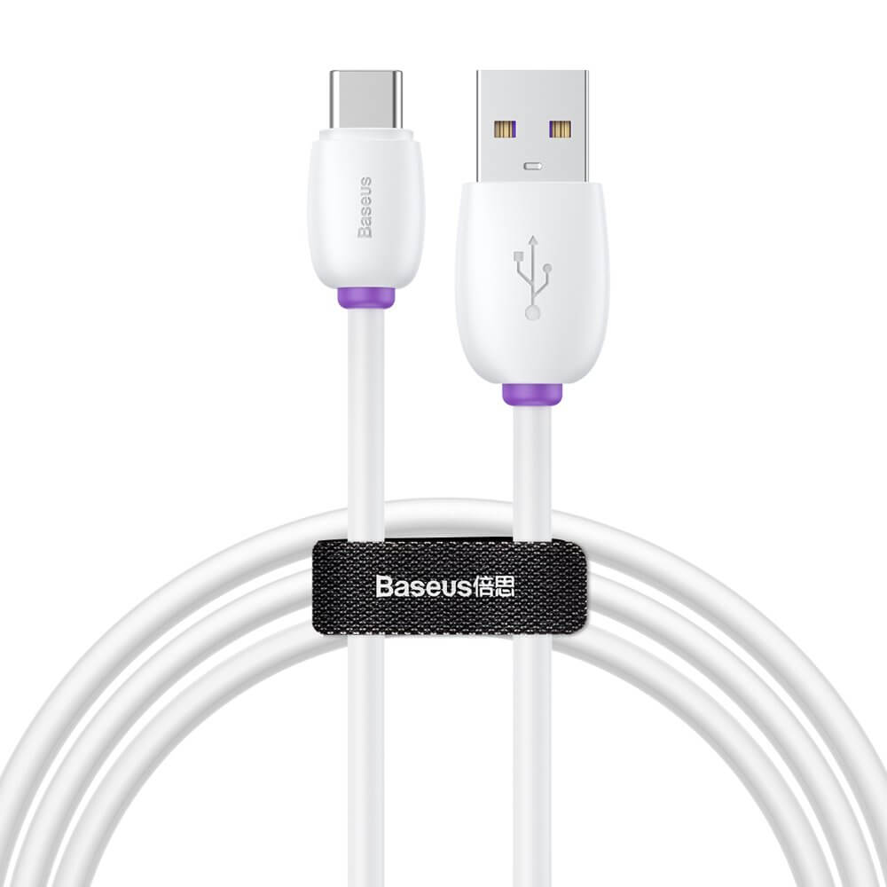 Baseus Purple Ring Quick Charge USB-C Cable - бърз USB-C кабел (5A) за устройства с USB-C порт (100 см) (бял)