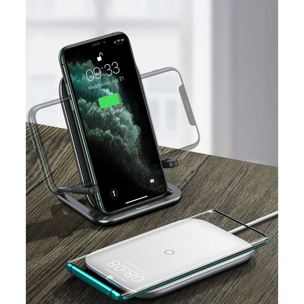 - Стилна и компактна поставка за безжично зареждане на смартфони, които поддържат Qi технология за безжично зареждане