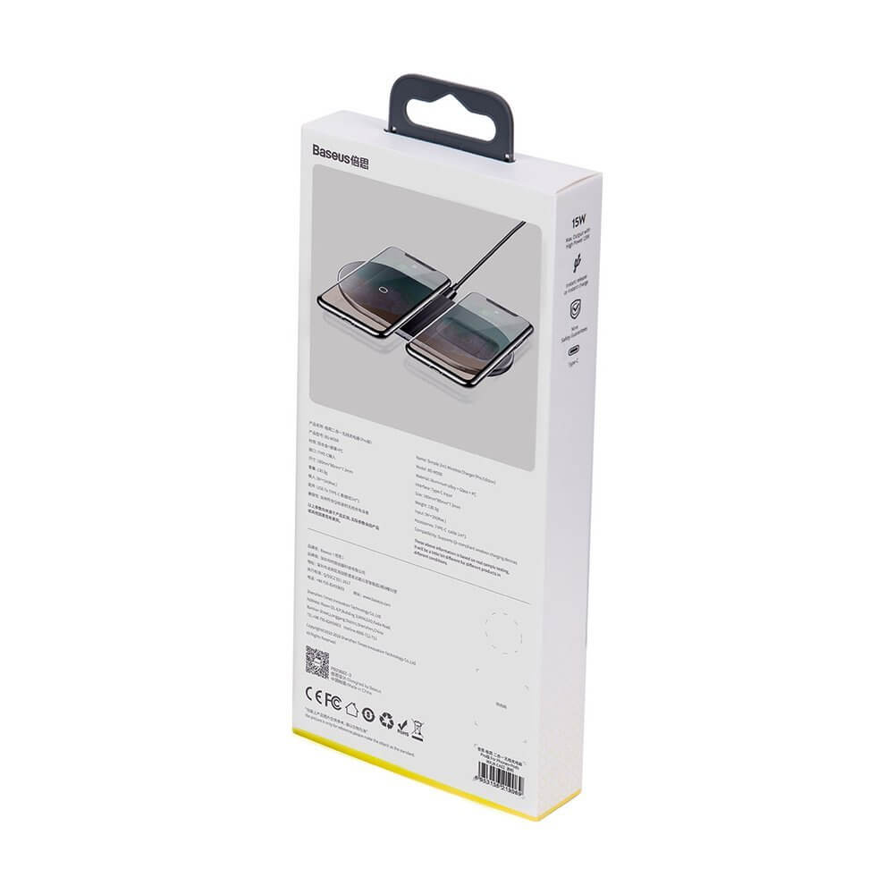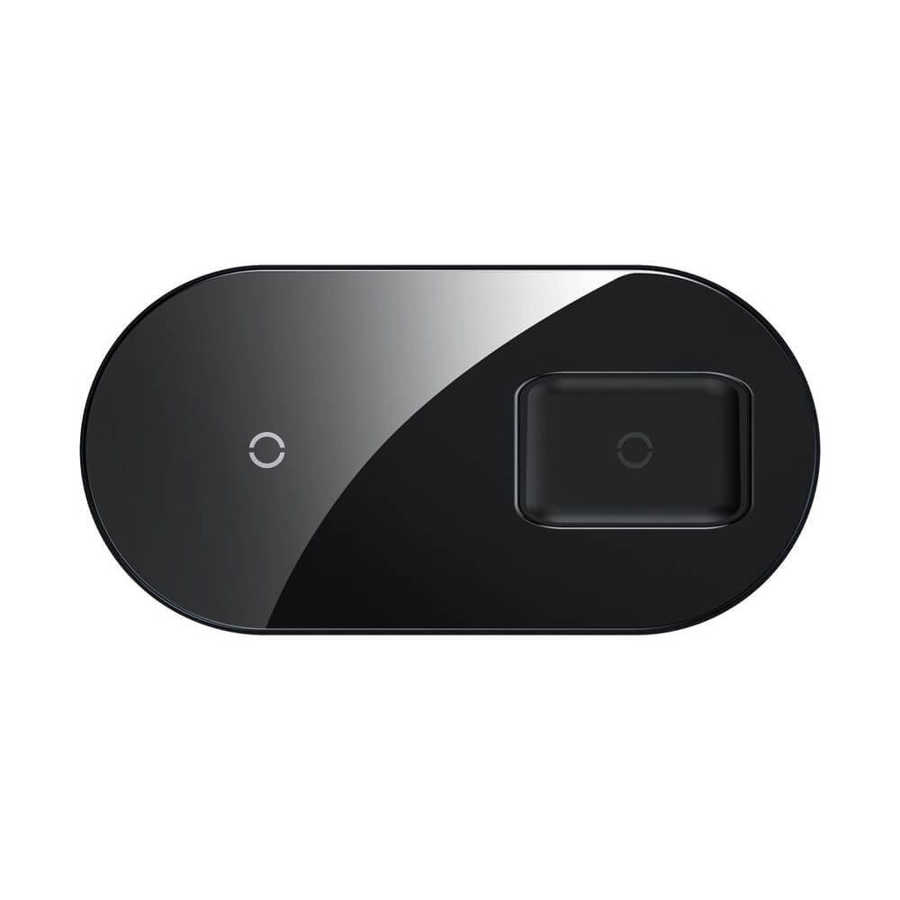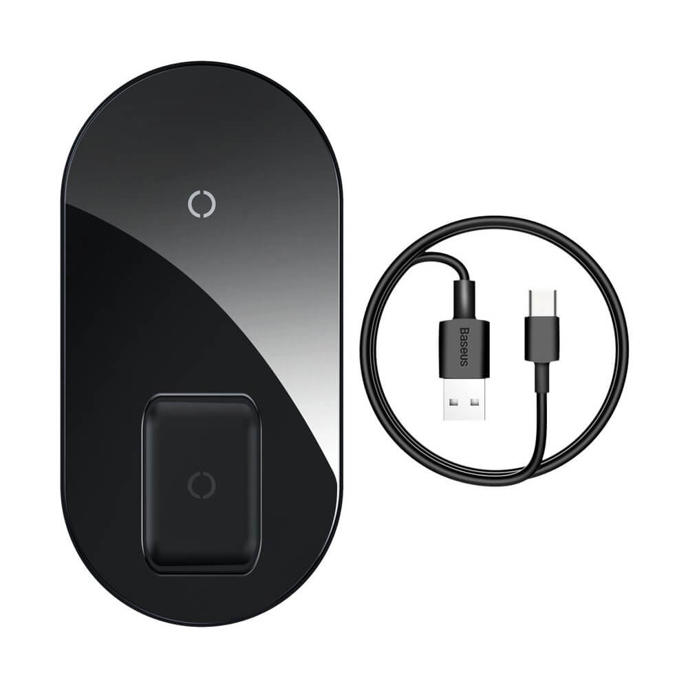 Baseus Simple Pro 2in1 Wireless Charger (WXJK-C01) - двойна поставка (пад) с Fast Charge технология за безжично зареждане за Qi съвместими устройства и Apple Airpods Pro (черен)