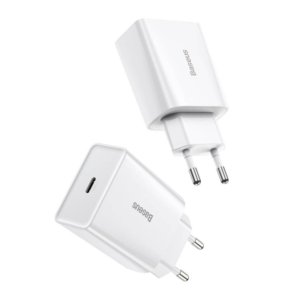 Baseus Speed Mini USB-C PD Wall Charger 20W (CCFS-SN02) - захранване за ел. мрежа с USB-C изход с технология за бързо зареждане (бял)