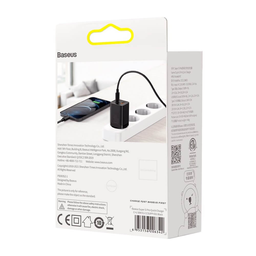 - 1 x Baseus Super Si Pro Quick Wall Charger 30W
