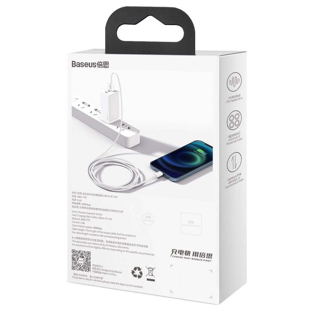 Baseus Superior Lightning USB Cable (CALYS-A02) - USB кабел за Apple устройства с Lightning порт (100 см) (бял)