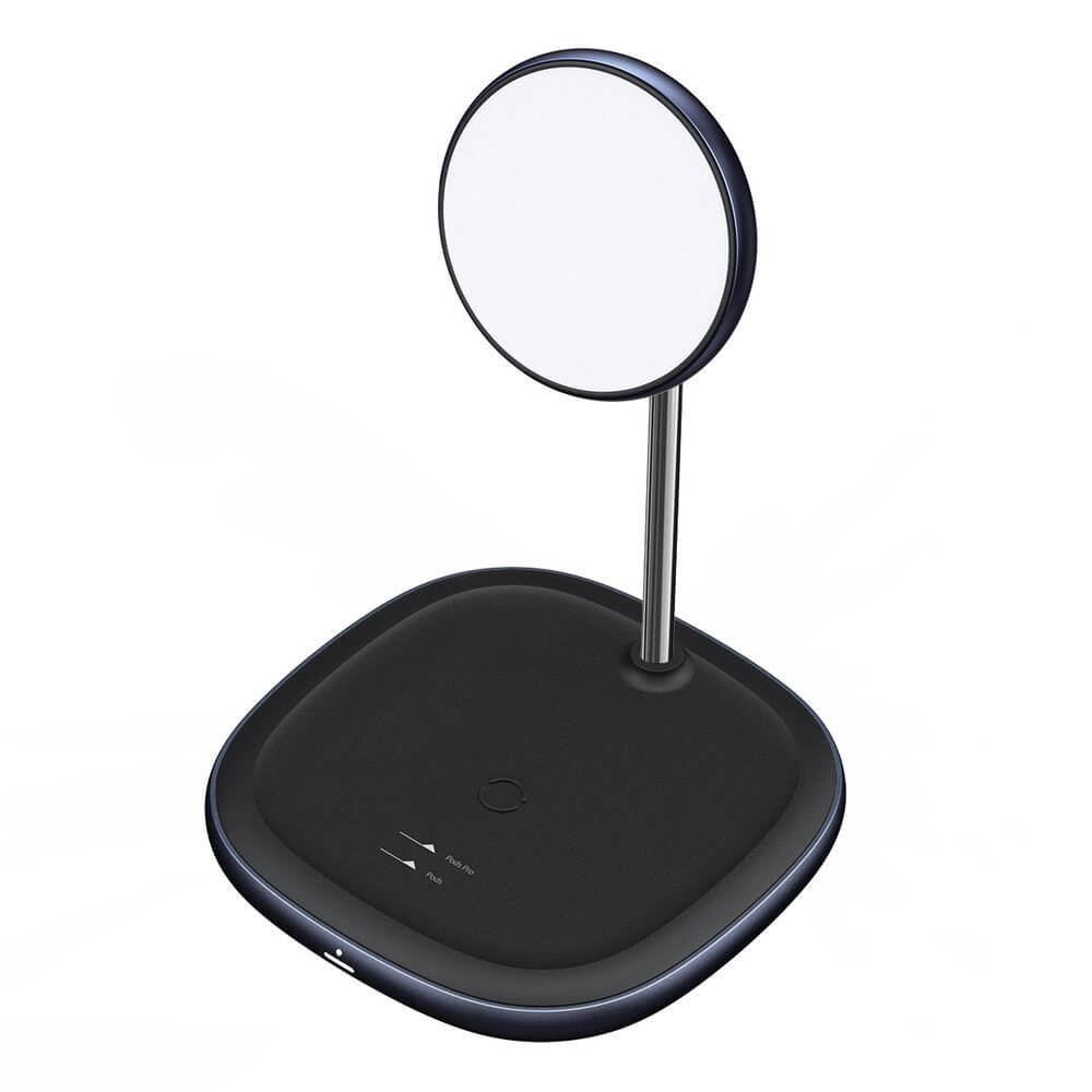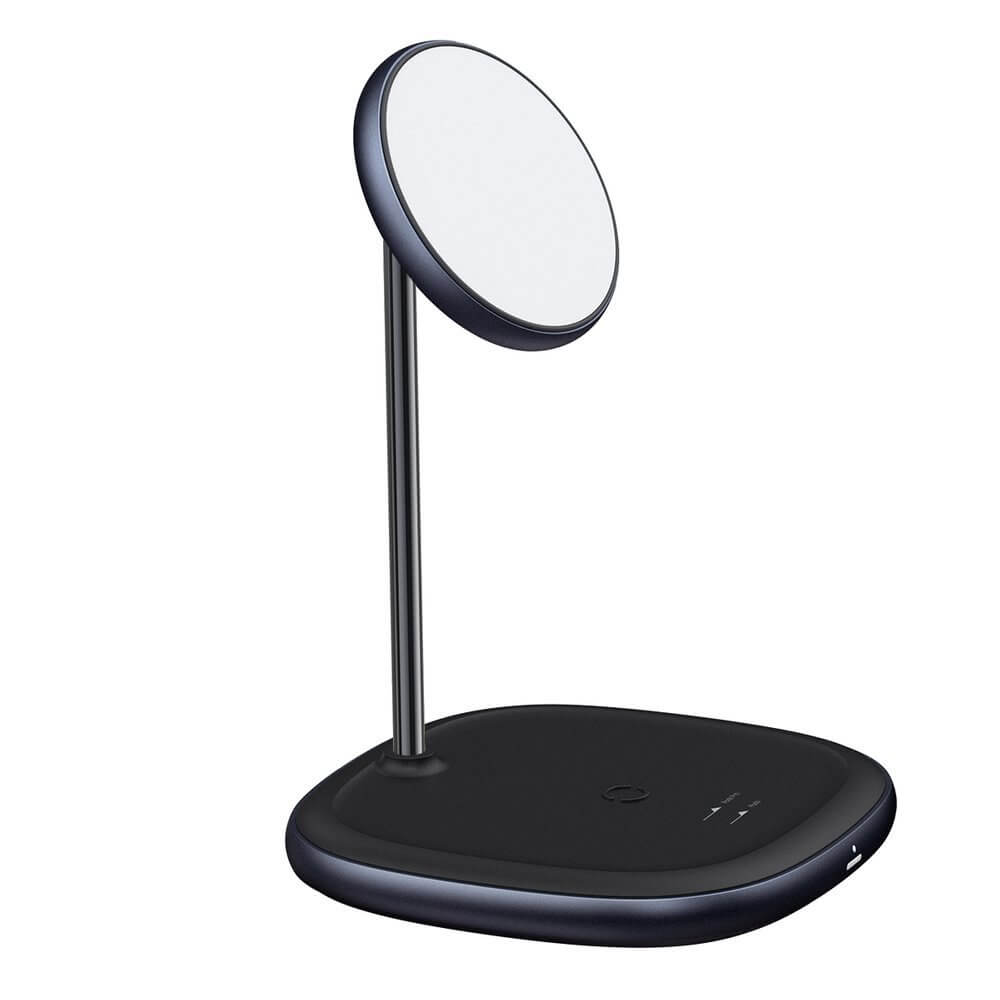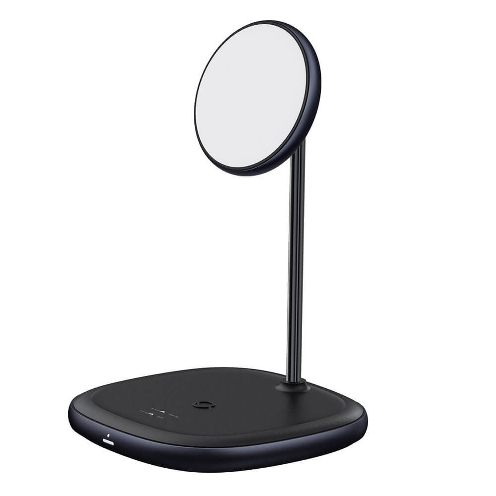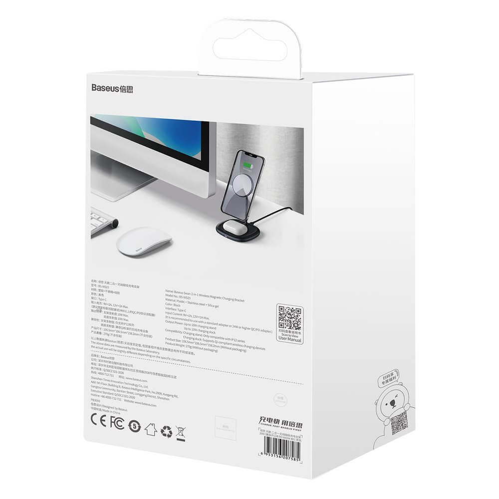 Baseus Swan 2-in-1 Magnetic Wireless Qi Charging Stand 20W (WXSW-C01) - двойна поставка (пад) за безжично зареждане за iPhone с Magsafe и други устройства с безжично зареждане(черен)